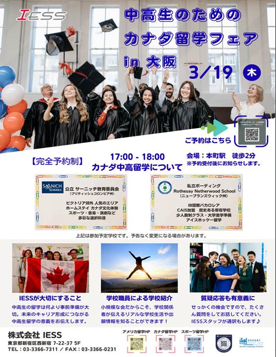 【News】現地校職員来日!カナダ中高留学フェア in 大阪